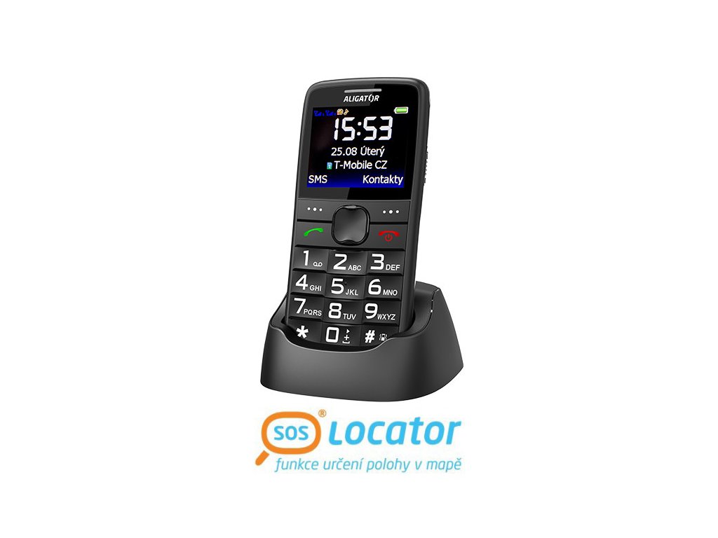 ALIGATOR A675 Senior černý + nabíjecí stojánek