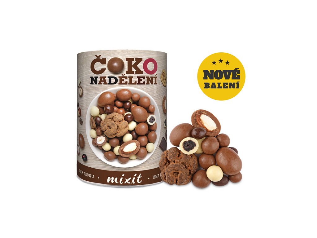 vlašské ořechy v hořké čokoládě a skořici (20 %), pražené mandle v mléčné čokoládě (20 %), černý rybíz v mléčné čokoládě (18 %), aronie v bílé čokoládě (18 %), lískové oříšky v mléčné čokoládě (14 %), kávová zrna v hořké čokoládě (10 %) (mléčná čokoláda 41 % (cukr, kakaové máslo, sušené plnotučné mléko, kakaová hmota, emulgátor: lecitiny, přírodní vanilkové aroma), hořká čokoláda 24 % (cukr, kakaová hmota, kakaové máslo, emulgátor: lecitiny; přírodní vanilkové aroma), bílá čokoláda 12 % (cukr, kakaové máslo, sušené plnotučné mléko, sušená smetana, emulgátor: lecitiny; přírodní vanilkové aroma), proslazená aronie 5,8 % (cukr, aronie, dextróza, regulátor kyselosti: kyselina citronová), jádra vlašských ořechů 4,2 %, pražená jádra lískových ořechů 4,1 %, jádra mandlí pražená 4 %, lyofilizovaný černý rybíz 2,5 %, pražená kávová zrna 1,4 %, mletá skořice 0,8 %, lešticí látka: arabská guma; cukr, med). V mléčné čokoládě obsah kakaové sušiny nejméně 30 %, v hořké čokoládě obsah kakaové sušiny nejméně 49 %.